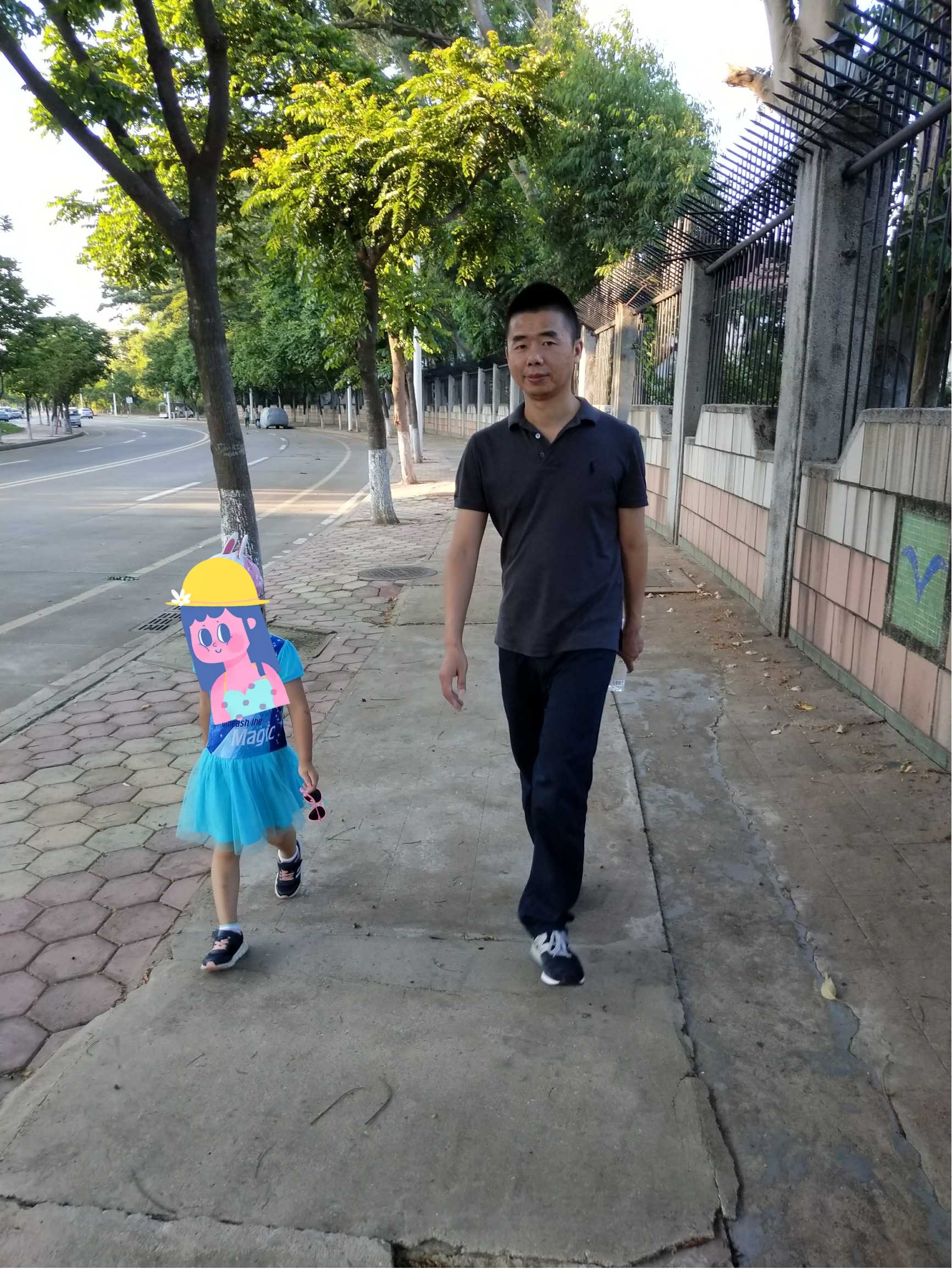 黄章发现被“偷拍”之后,干脆给出了正面照,旁边还有紧紧跟随的可爱女儿一枚。