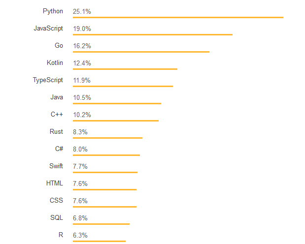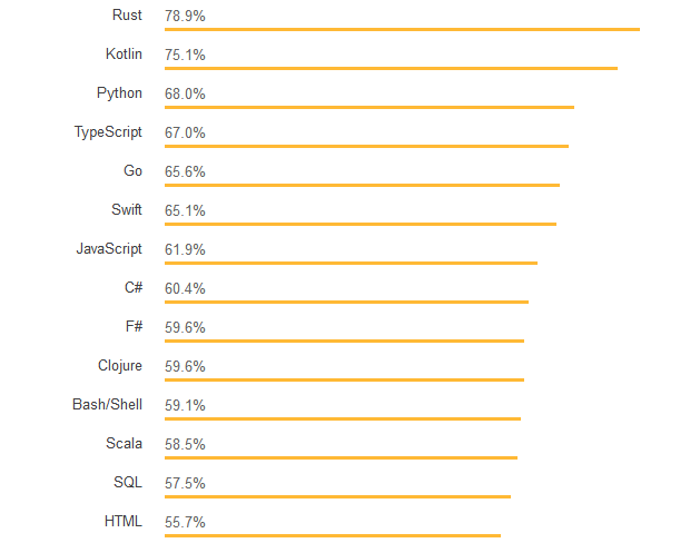 最受开发者喜爱的语言