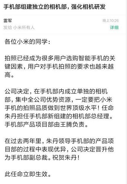 值得一提的是,雷军今年5月宣布,为手机部成立单独的相机部,强化研发,目标是把小米手机的拍照品质做到世界顶级水平。