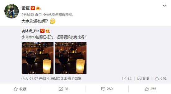 今晨,小米总裁林斌在微博发布小米MIX 3在复杂昏暗光线下的样张,他表示“MIX 3拍照杠杠的,还需要跟友商比吗?”,看起来信心满满。