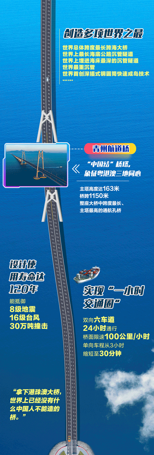 10月23日上午,港珠澳大桥通车仪式举行,这座历时14年建设、总长约55公里的世界最长跨海大桥将于24日上午9时正式通车运营。港珠澳大桥被英国《卫报》称为“现代世界七大奇迹”之一,而如此宏大的工程,建成实属不易。