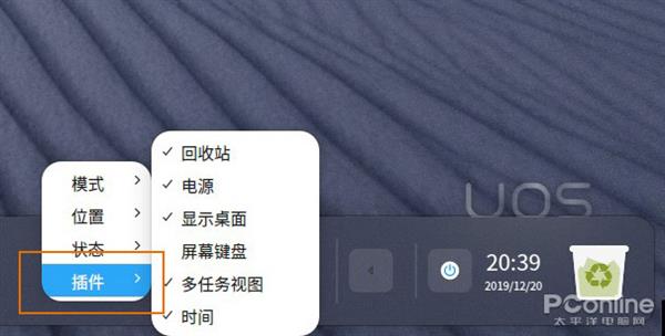 “插件”是UOS中比较好玩的一项功能,比方说你有随手“扔垃圾”的习惯,那么就可以把回收站放到这里,嫌每次关机太麻烦,就把电源按钮安排进去……。