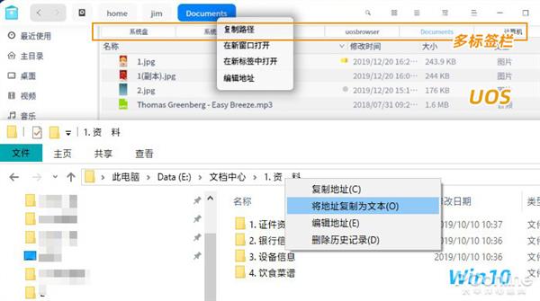UOS资源管理器界面没有预留快捷按钮,也就是说无论复制还是粘贴,这些常用操作全都要依靠右键或者键盘快捷键完成。