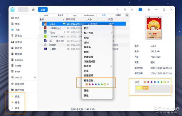 如果你的文件是图片、音乐、文档……,甚至还能添加颜色标签(TAG),以方便后期搜索。