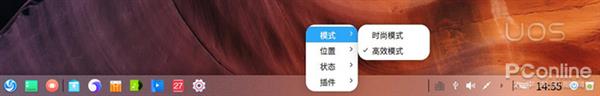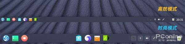 任务栏支持两种模式,“高效模式”和“时尚模式”。最简单的理解,就是“高效模式”是类Windows风格,“时尚模式”是类macOS风格。