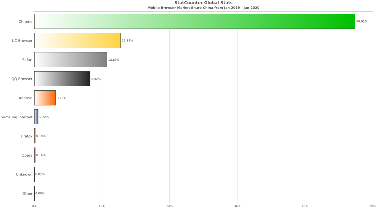 总体来说,Chrome本身就是一款非常优秀的浏览器,如此高的市场占比也无可厚非。而UC浏览器则表现喜人,无论国内、国外都取得了非常优秀的市场份额。