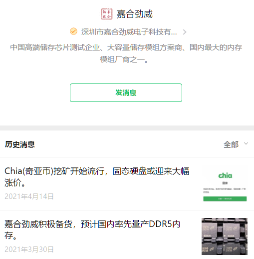 外加上现在显卡和 CPU 已经被抢断货了,新矿工要想最低成本入局,只能买硬盘挖奇亚币。天时地利人和,奇亚币的前景一片光明。然而奇亚币的前景越光明,我对硬盘价格的走向就越绝望。。。而且不光差评君这么想,嘉和劲威也发了一篇公告,预测固态硬盘或迎来涨价。可能你没听说过嘉和劲威,但国产固态 “ 光威 ” 和 “ 阿斯嘉特 ” 的名字你肯定听说过。